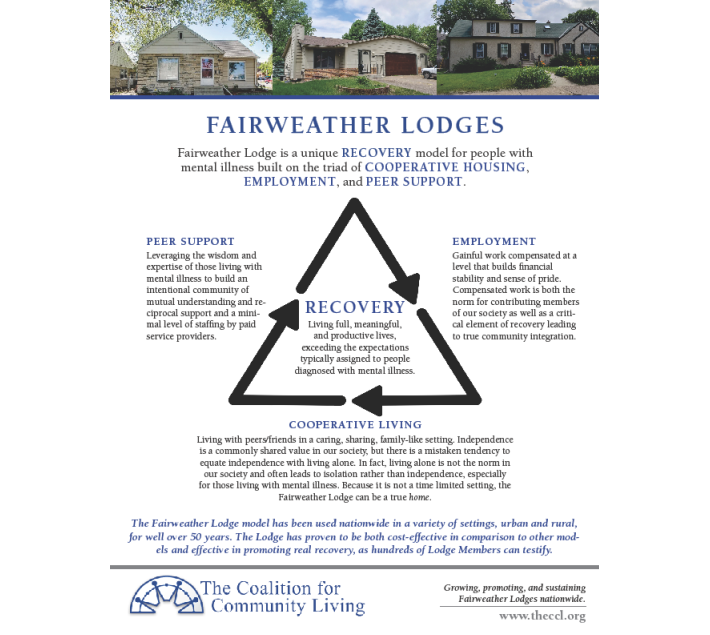 The model is named after its creator, Dr. George William Fairweather, who first introduced the community living model in the 1960’s with patients coming out of a VA hospital. His work continued to spread the use of the model in many states and regions.